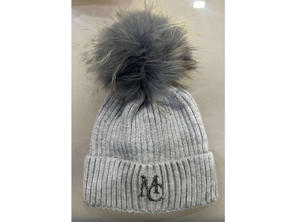 Vastag,  kötött anyagú bojtos sapi, strasszos matricanyomott márkajelzéssel.